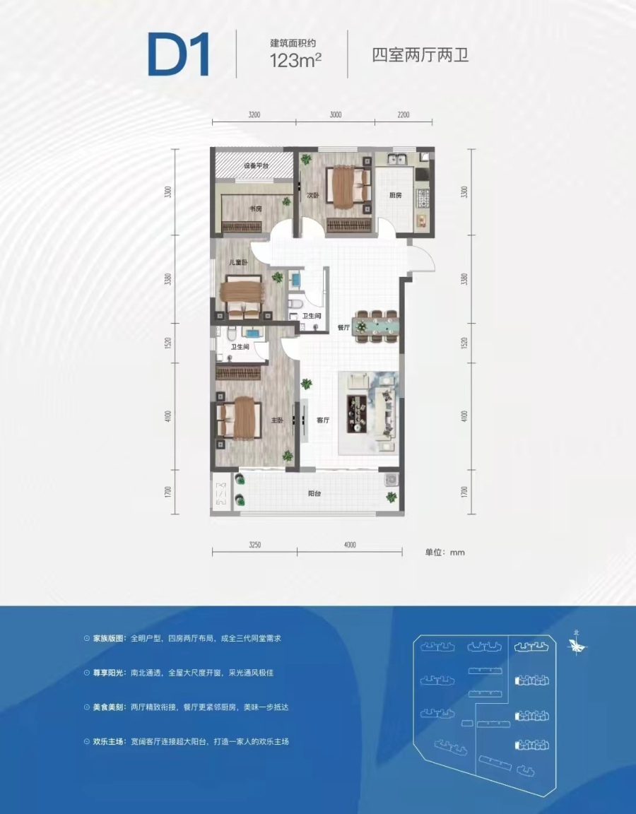 户型:南北通透,户型方正,无浪费面积,赠送大